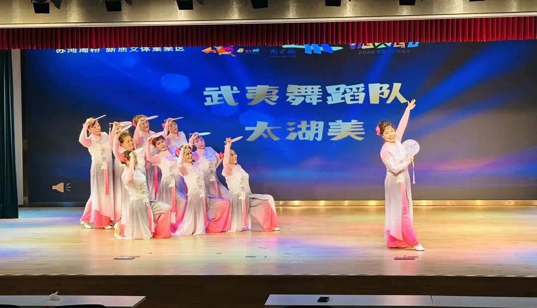 “最近春光很好,阿姨们自信的笑容比春花更灿烂,苏河之畔也因为他们的欢舞,更加美丽。”特意前来观演的社区居民夫妇,在台下热情地充当啦啦队,为大家的表演欢呼鼓掌。