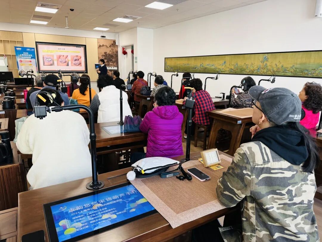 二楼智慧教室里,一场穿越千年的东方美学之旅悄然开启。在专业老师的指导下,居民们品味中国三大名锦之一——宋锦的美。一块块精致的锦缎,在巧手中被裁成掌中的小葫芦,穿针引线间,千年匠心化作圆润饱满的“福禄”造型。