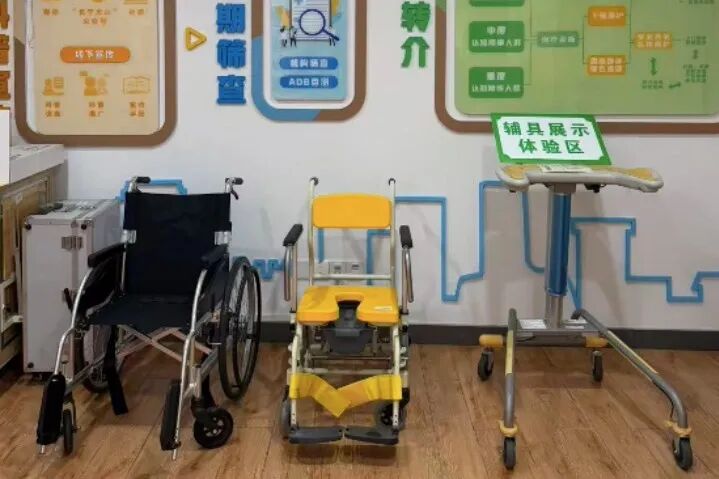 在天山路街道综合为老服务分中心的辅具样板间,一场小型辅具租赁展悄然拉开帷幕,工作人员针对现场展示的各类辅具进行逐一介绍,并邀请感兴趣的社区老年人体验使用。