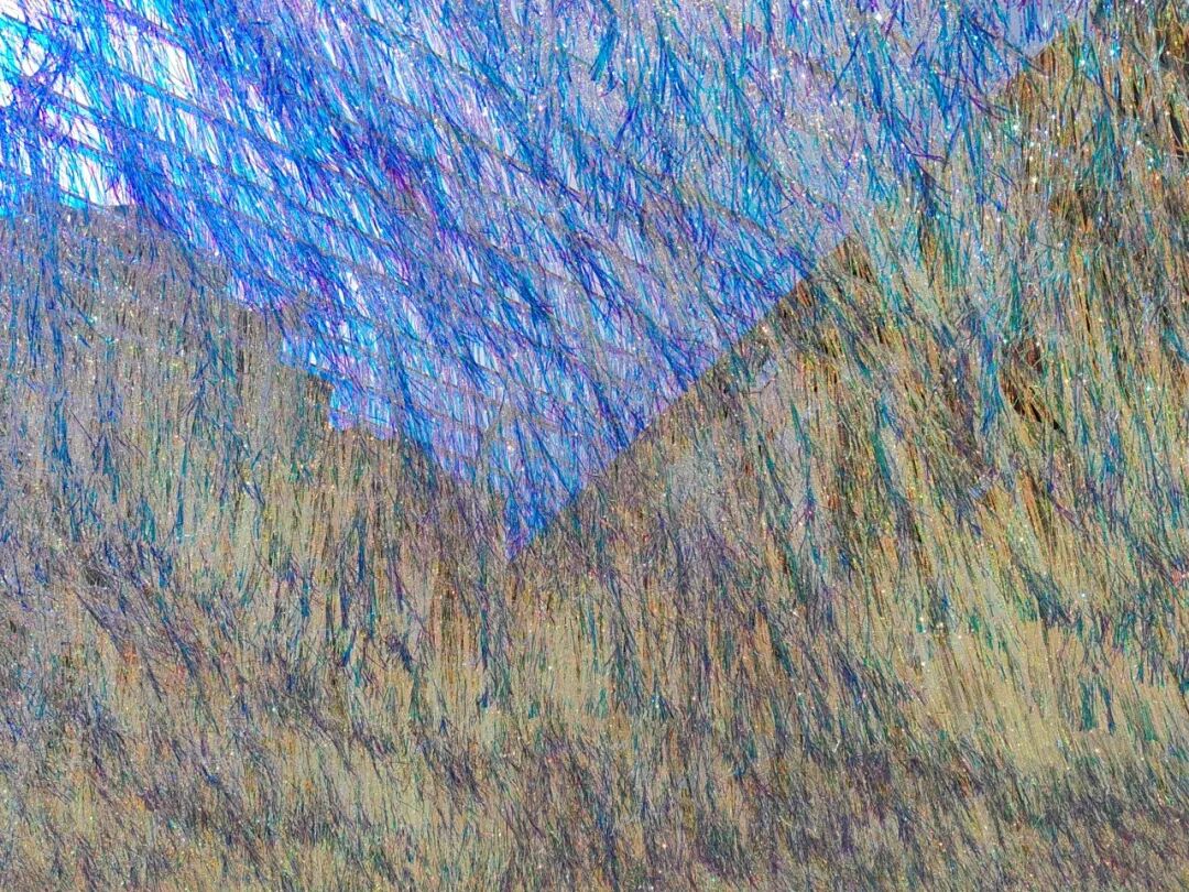驻足幕布之下,阳光穿透丝带,折射出变幻莫测的光泽,澄澈的蓝与莹润的银交织缠绕,晕染出梵高笔下独有的朦胧光影,既有印象派画作的瑰丽想象,又有自然光影的灵动鲜活,仿佛将梵高笔下的星空搬进了社区,梦幻得让人沉醉。