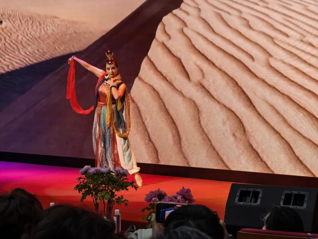 开幕式上,弦乐演奏温暖拉开帷幕,原创诗朗诵《遇见新华·遇见幸福》、埙乐独奏《牡丹之歌》、舞蹈《敦煌飞天》相继登台,展现千年非遗与古典韵味的精彩碰撞。法华牡丹嫁接技艺非遗代表性传承人程思涵现场讲述“花中之王”的前世今生,分享非遗技艺背后的温度与使命。