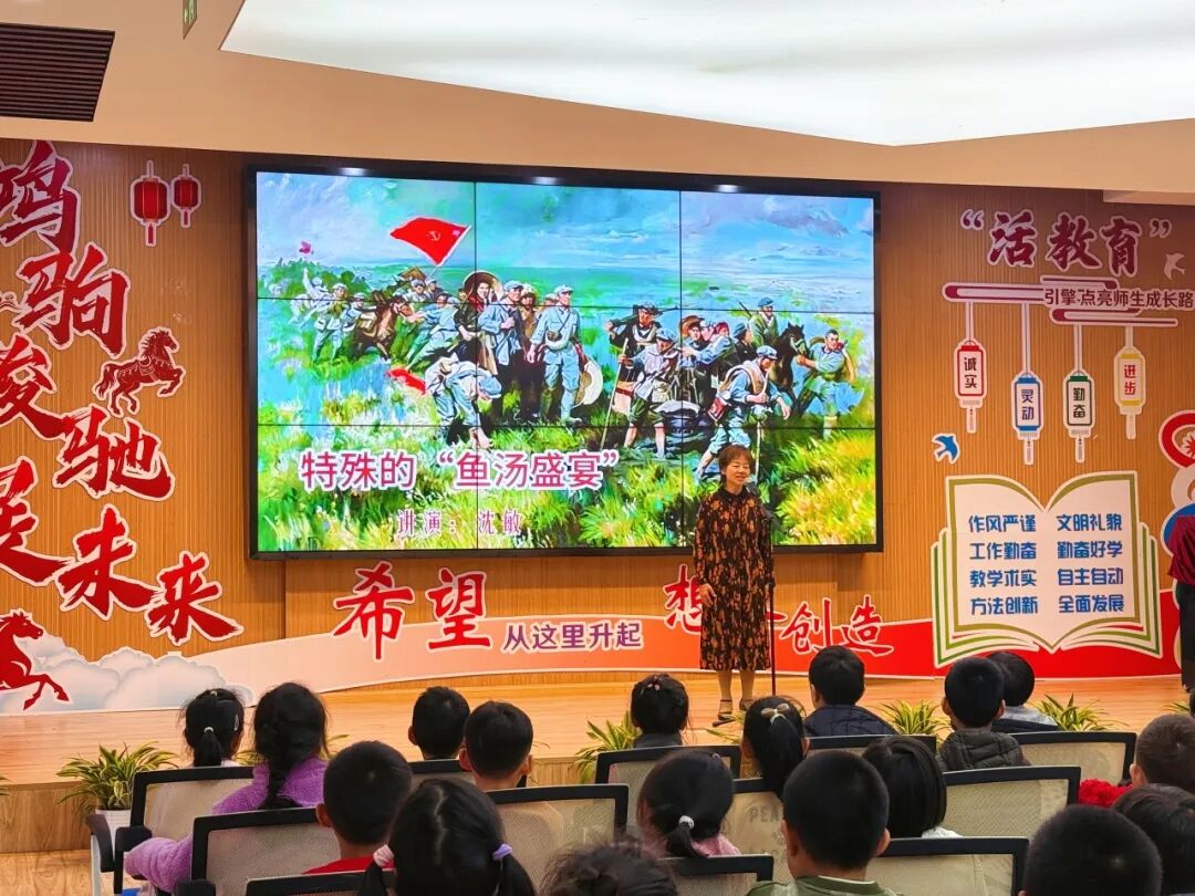 “长征路上,红军叔叔饿了吃草根、啃树皮,却把仅有的一点鱼汤,让给了受伤战友……”《特殊的“鱼汤盛宴”》的讲述中,这些细节还原出长征途中的感人瞬间,孩子们仿佛看到了战士们相互扶持、共渡难关的身影。