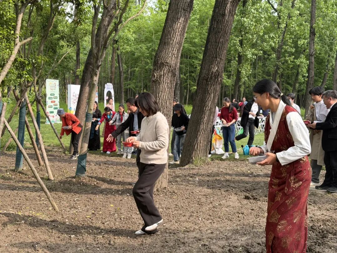 “耕春·共护家园”环节将活动推向高潮。学生代表与民族联代表一一结对,共同领取格桑花籽,携手走进花田,弯腰播种、覆土压实。2025年播下的格桑花已然绽放,今年新播的花籽将续写生机,一枯一荣间,是民族团结情谊的延续,也是新泾镇生态保护实践的传承。