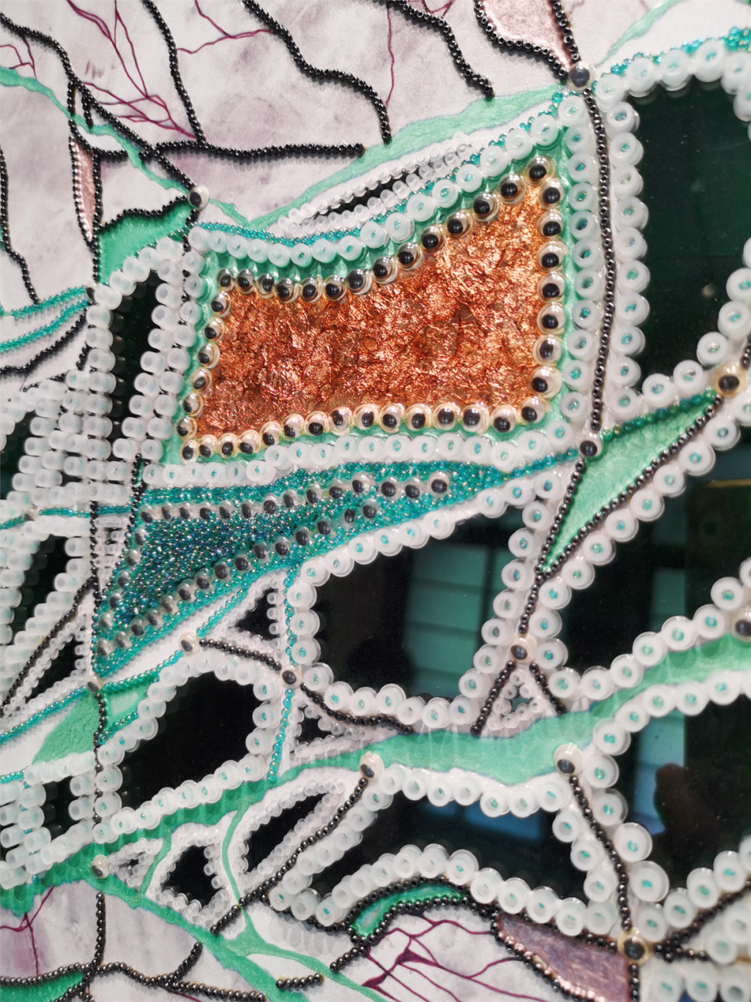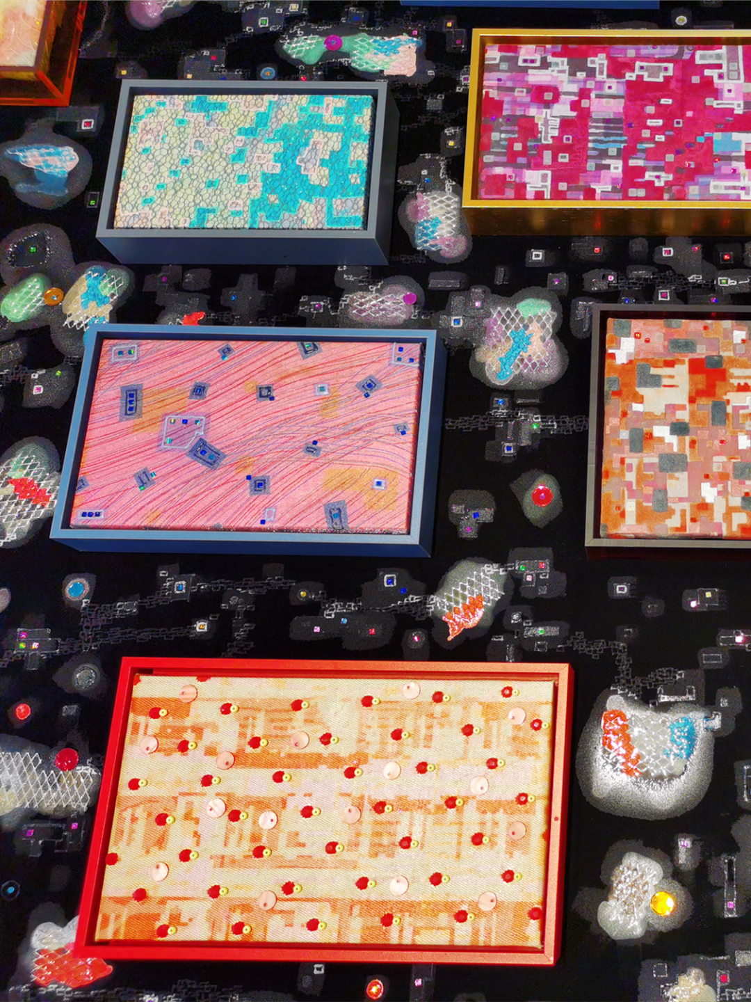 景昱毕业于英国圣马丁艺术学院“纺织艺术设计”专业,擅长运用拼贴手法进行创作。在观展过程中,市民能轻松找到她的创作特色。例如,“Metro System纵横”系列作品中,展示了材料本身的质感和美感,不同视角的城市肌理令人印象深刻。