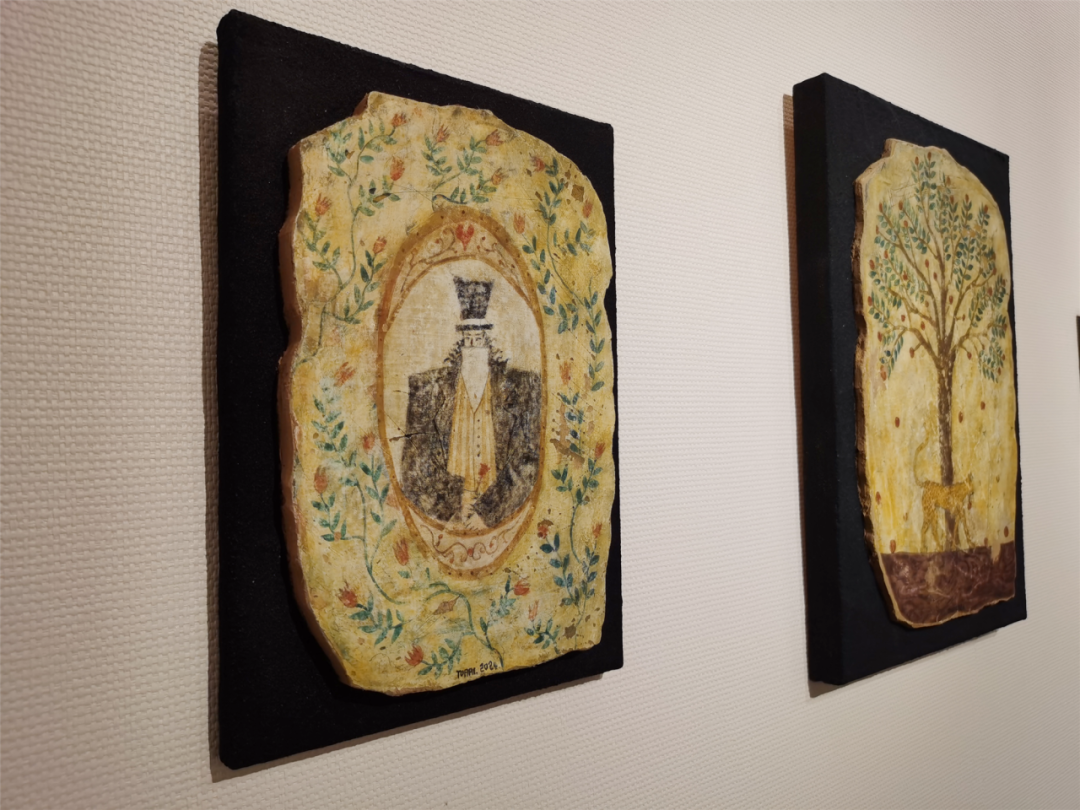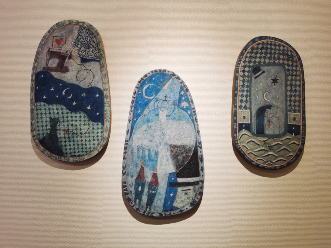 位于茑屋书店画廊的《片段:靳兆心个人作品展》,艺术家用全新的绘画、装置等作品,打造了一个童话般的乐园世界。观展过程中,你能找到一位戴着高礼帽的男主人公,被围绕在木马、豹子、时钟、星星等元素之中,配合岩彩的特殊肌理,呈现出一种欧式古老传说般的浪漫氛围。