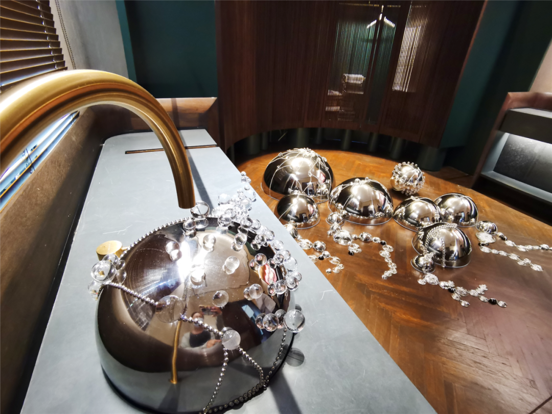展览巧用历史建筑本身的空间和魅力,放大了展览主题。例如,孙科别墅原衣帽间内的水龙头与作品相结合,构思了一处时间像流水一般落下的景象。