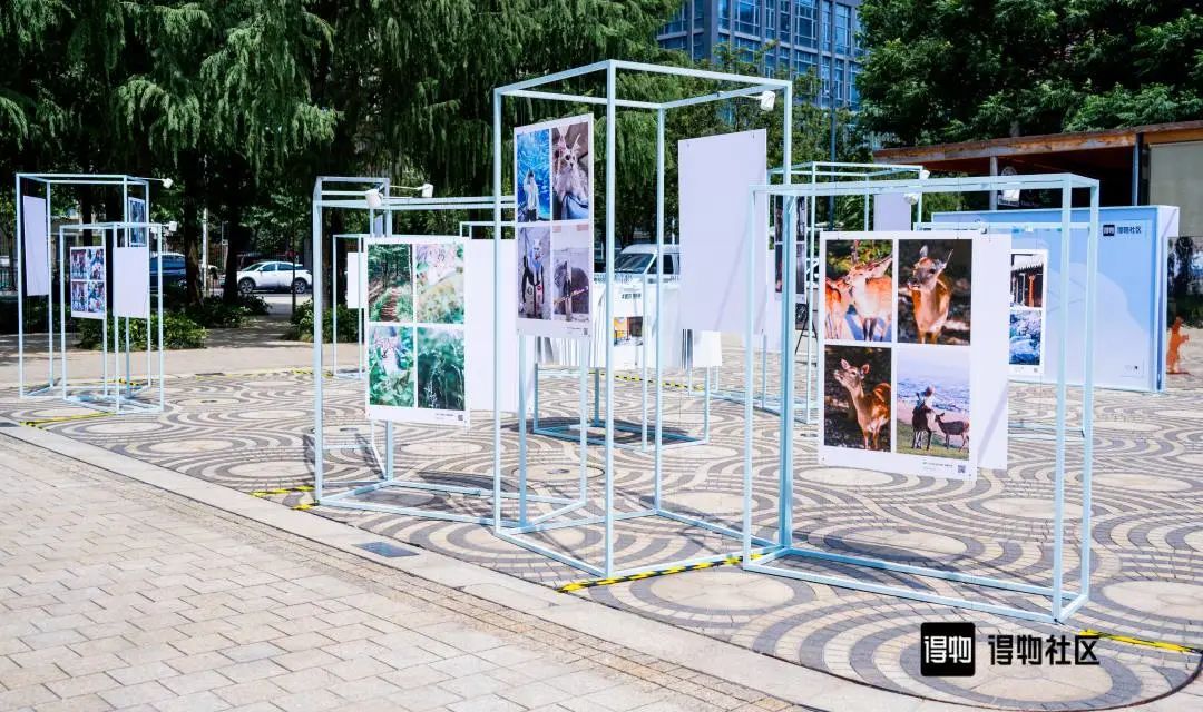 在喷泉广场,得物首次线下公益摄影展正在进行,展览以“握爪”为主题,展出作品均来自得物社区的创作者,前期征稿耗时一个月,最终挑选出百余幅精品。