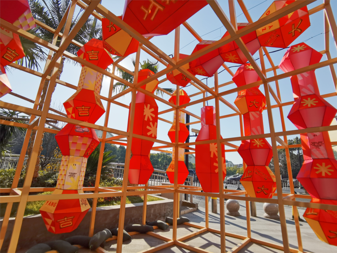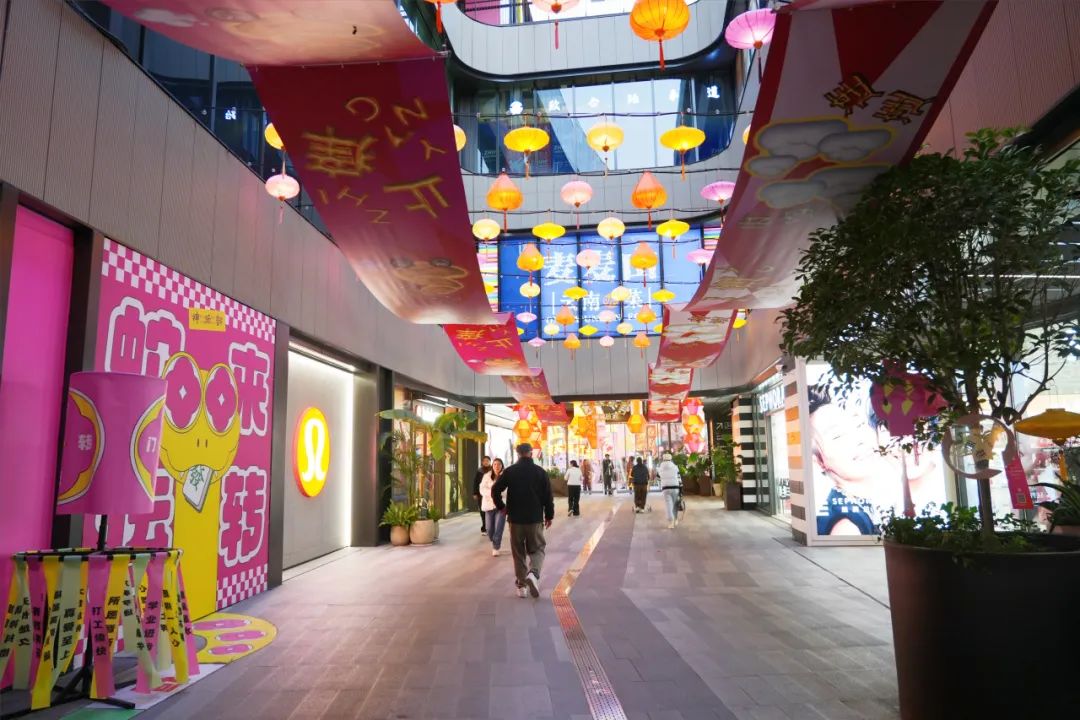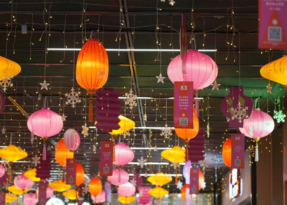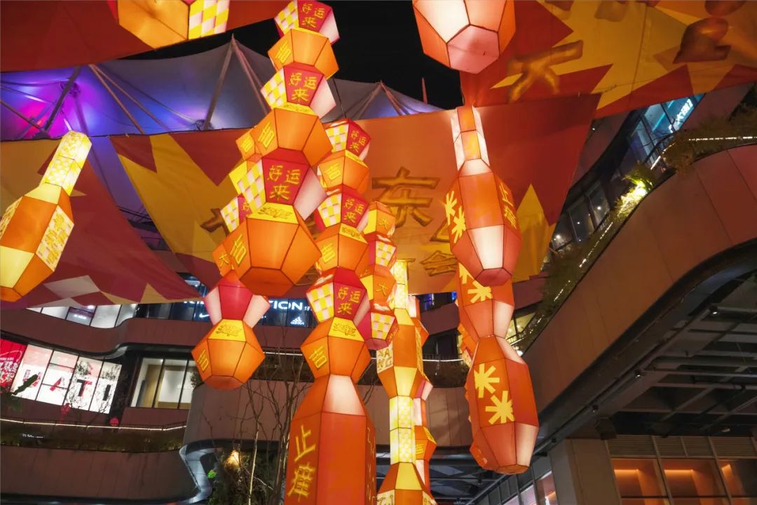 本次活动是百联西郊“有点东西”文化节的特色内容之一,将持续至2月中旬。可以看到,商场主入口、户外广场等空间悬挂着灯笼,营造出浓郁的节日氛围,仿佛将人们带入一个充满妙趣的新春世界。
