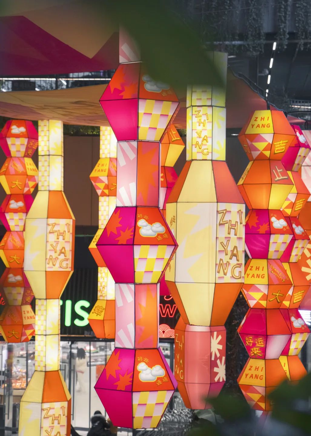 灯笼款式各异,融合传统与潮流,用色鲜明跳跃,十分吸睛。夜晚华灯初上,璀璨的灯笼形成了一道亮丽的风景线,让过往行人忍不住驻足。