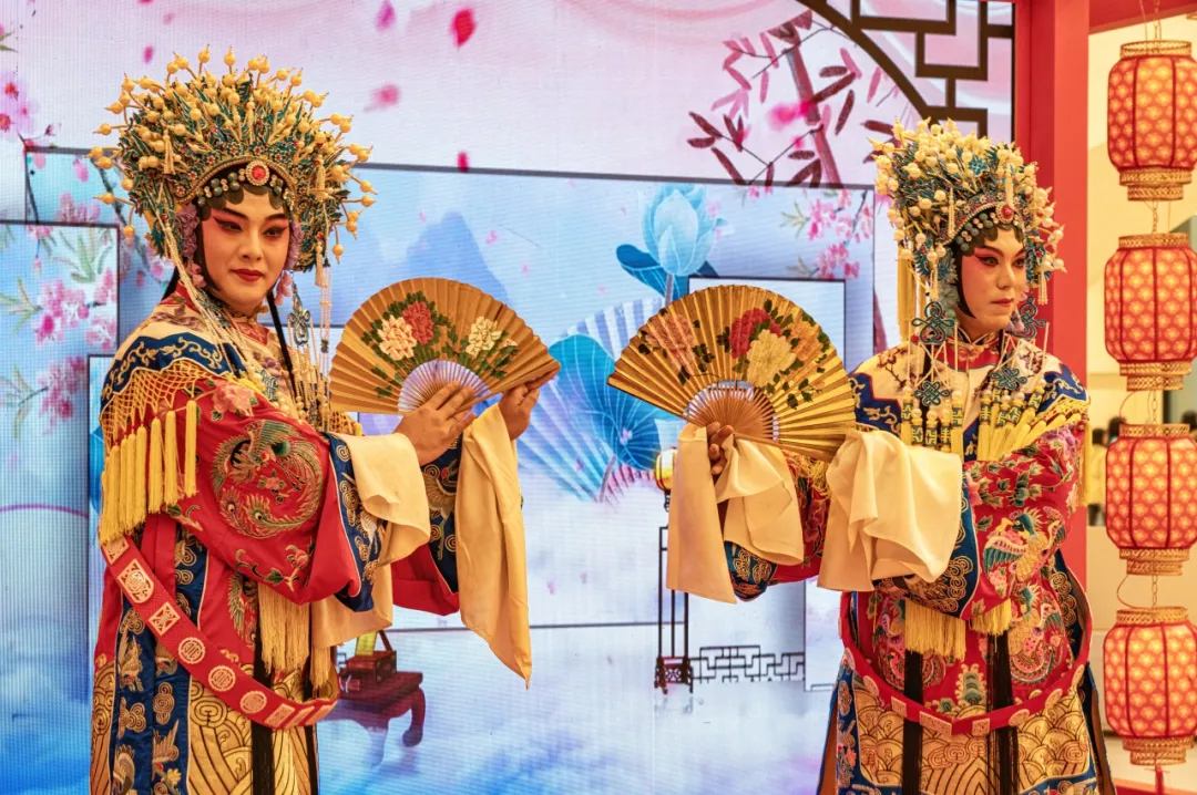 活动当日,上海荟聚一楼中庭挂满了花灯与灯谜,尤为喜庆。伴随着震天响的锣鼓声,开场节目《鼓舞中华》上演,随后,一曲《贵妃醉酒》尽显国粹风华,高难度杂技《柔术造型》更是引得观众掌声不断。