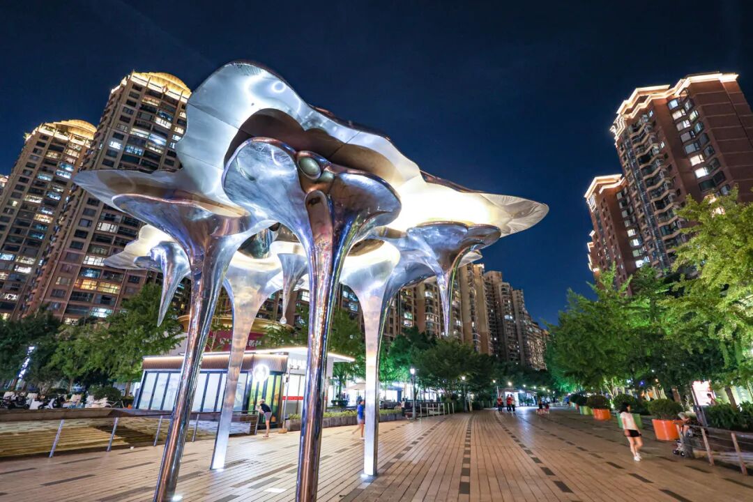 尤为亮眼的是,光影主题标识与日常生活深度融合,催生出充满烟火气的夜市。市民赏景之余,可穿梭在各个摊位品尝美食、挑选好物,在热闹氛围中感受夜晚活力,实现“赏景”与“生活”的无缝衔接。
