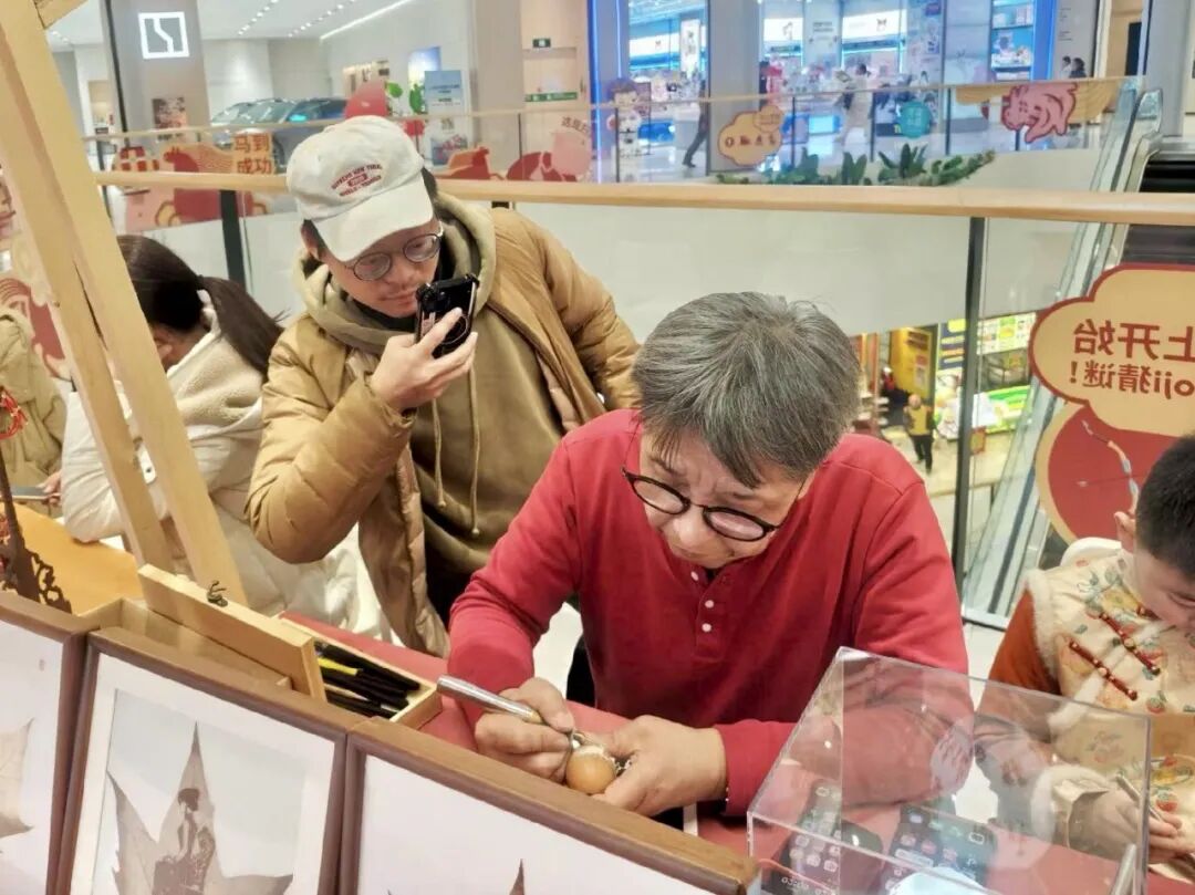 “我是特意带着孩子来感受非遗的!”市民王女士牵着7岁的儿子,在蛋雕摊位前驻足观看,“刚才看传承人在蛋壳上雕刻,孩子眼睛都看亮了,能跟着大师学,比书本上的知识生动多了。”她笑着说,市集里既有能看的、能吃的,还有能动手做的,孩子玩得不亦乐乎,自己也被深深吸引。