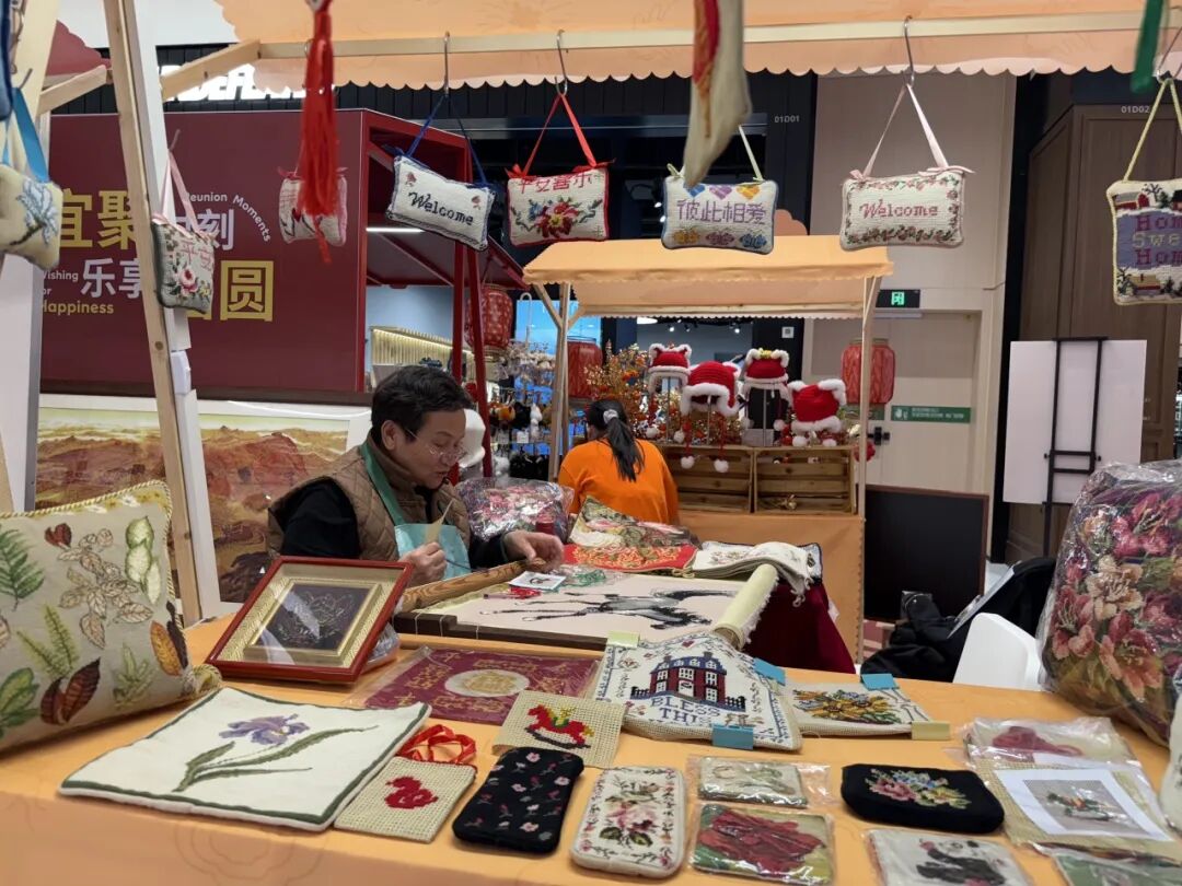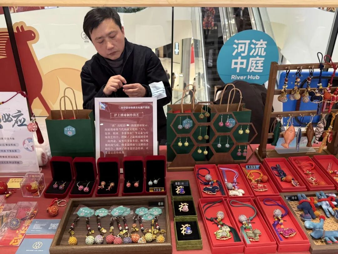 走进上海荟聚的“春节非遗市集”,红底金字的摊位帐篷连成一片,浓浓的年味儿扑面而来。海派陶瓷的青花小马憨态可掬,蛋雕、叶雕的微观世界精巧绝伦,海派绣球、宋锦挂饰色彩鲜亮,绒绣的“东方油画”细腻生动……每一个摊位前都围满了好奇的市民,指尖触摸着千年技艺,感受着非物质文化遗产的温度。