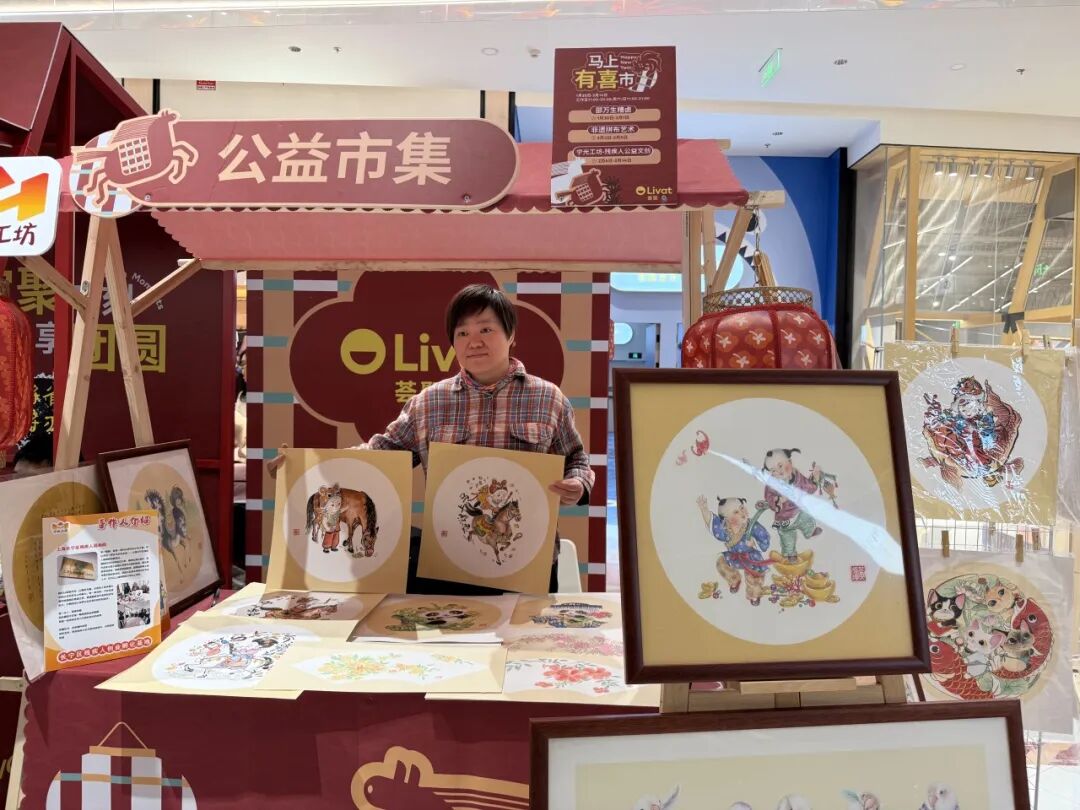 除了丰富的非遗体验,市集还特别设置了公益摊位,携手区残联及君爱公益“雀亦锵锵”助残品牌文创,展示特殊艺术家及社区手艺人的作品。