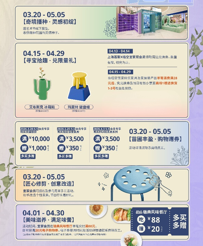 展览将持续至5月5日,全程免费开放,访客还能享受吃喝玩购一站式体验,兑换宜家会员限定周边,多重优惠层层叠加,让看展之旅更具实用性。