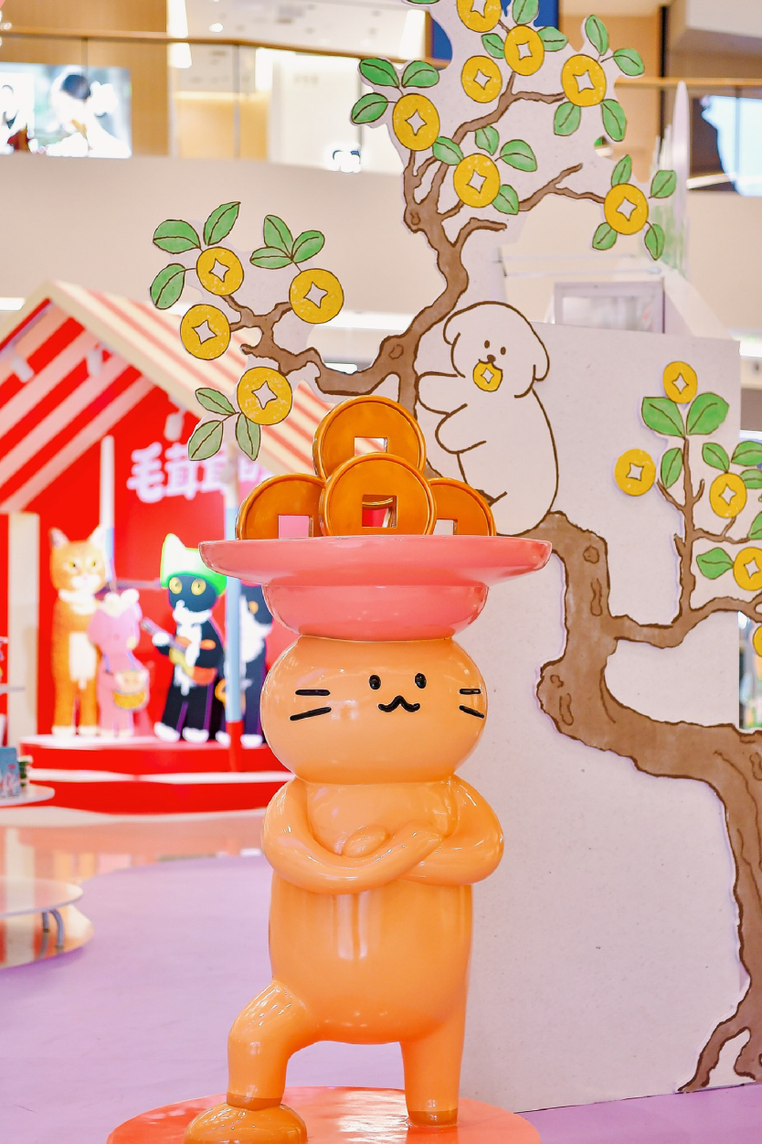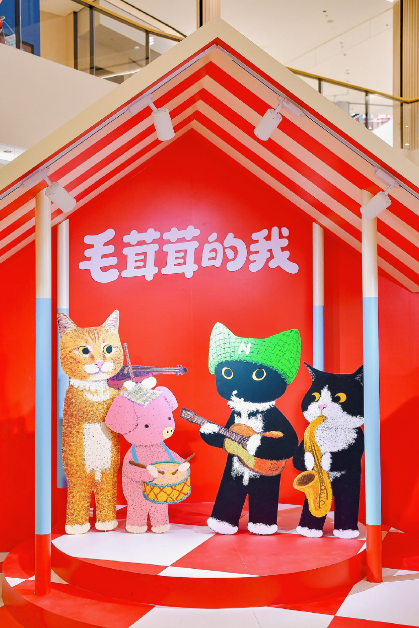 步入现场,仿佛踏入萌宠的奇幻世界。这里有融合中式园林审美与拟人化宠物趣味的场景,佛系狗摇着尾巴趴在假山上,发财猫蹲在雕花窗棂旁,氛围轻松惬意;“星克物语”主题布景中,小星星、卡卡、阿瓜等可爱形象俏皮互动,为空间增添童趣;网红奶牛猫newnew化身乐队主唱尽情“表演”,生动还原演出的热闹场景。即日起至6月1日,除了沉浸式打卡空间和文创周边,快闪还准备了消费盖章、宠物头像手绘、艺术家签名版画限量发售等惊喜。