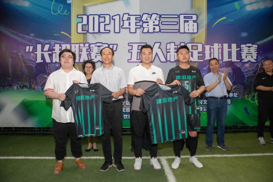长宁区体育局局长王仁伟、长宁区社会体育指导中心主任钱文彬、赛事赞助商建滔地产董事助理及合约部总监郑文玮、与上海建滔广场总经理罗钧浩交接赛事赞助球衣!