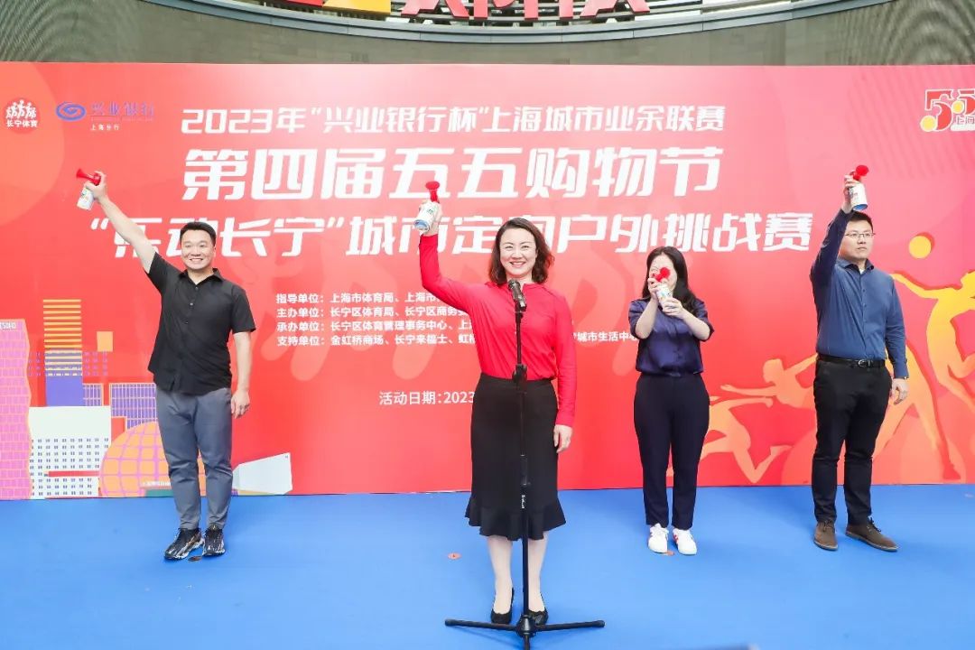 2023年兴业银行杯上海城市业余联赛第四届五五购物节乐动长宁城市定向户外挑战赛,于5月21日在金虹桥商场活力开赛。长宁区体育局党组副书记、副局长王伟琴,长宁区商务委员会副主任朱虹,长宁区体育管理事务中心主任钱文彬,上海市登山户外运动协会秘书长黄泓清等出席了开幕仪式。