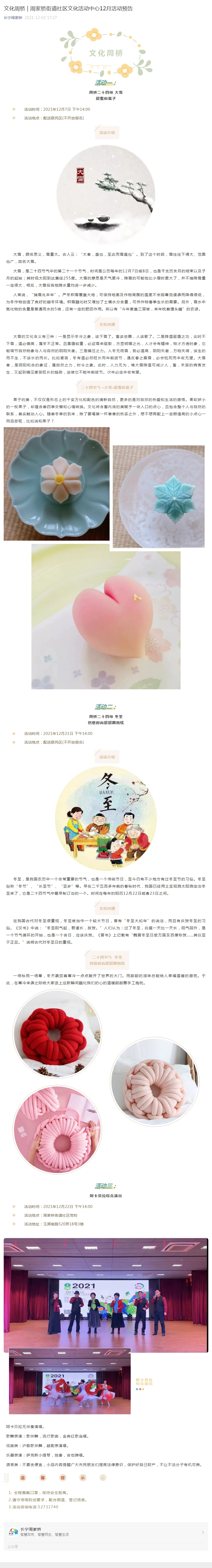 周家桥街道社区文化活动中心12月活动预告