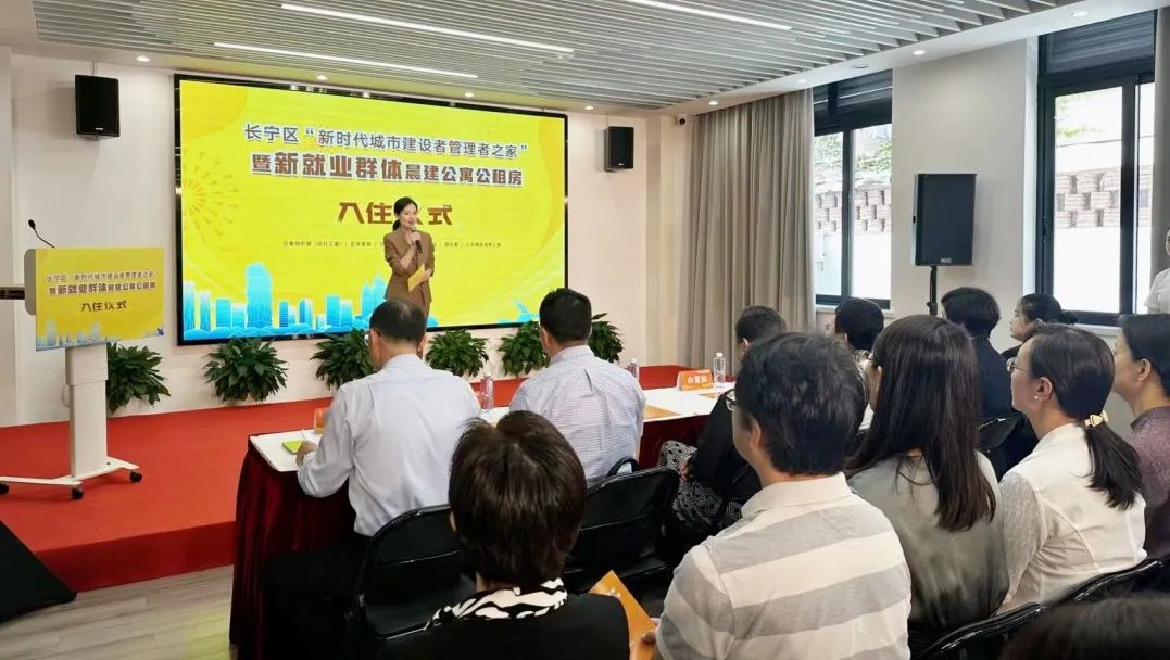 9月1日下午,长宁区举行“新时代城市建设者管理者之家”暨新就业群体晨建公寓公租房入住仪式。区委常委、组织部部长白雪茹,区人大常委会副主任、区总工会主席潘敏,市委组织部、市房管局、团市委相关领导,区社会工作党委、区房管局、区绿化市容局、区总工会、团区委、江苏路街道党工委、区公租房公司相关负责同志、部分入住代表参加。