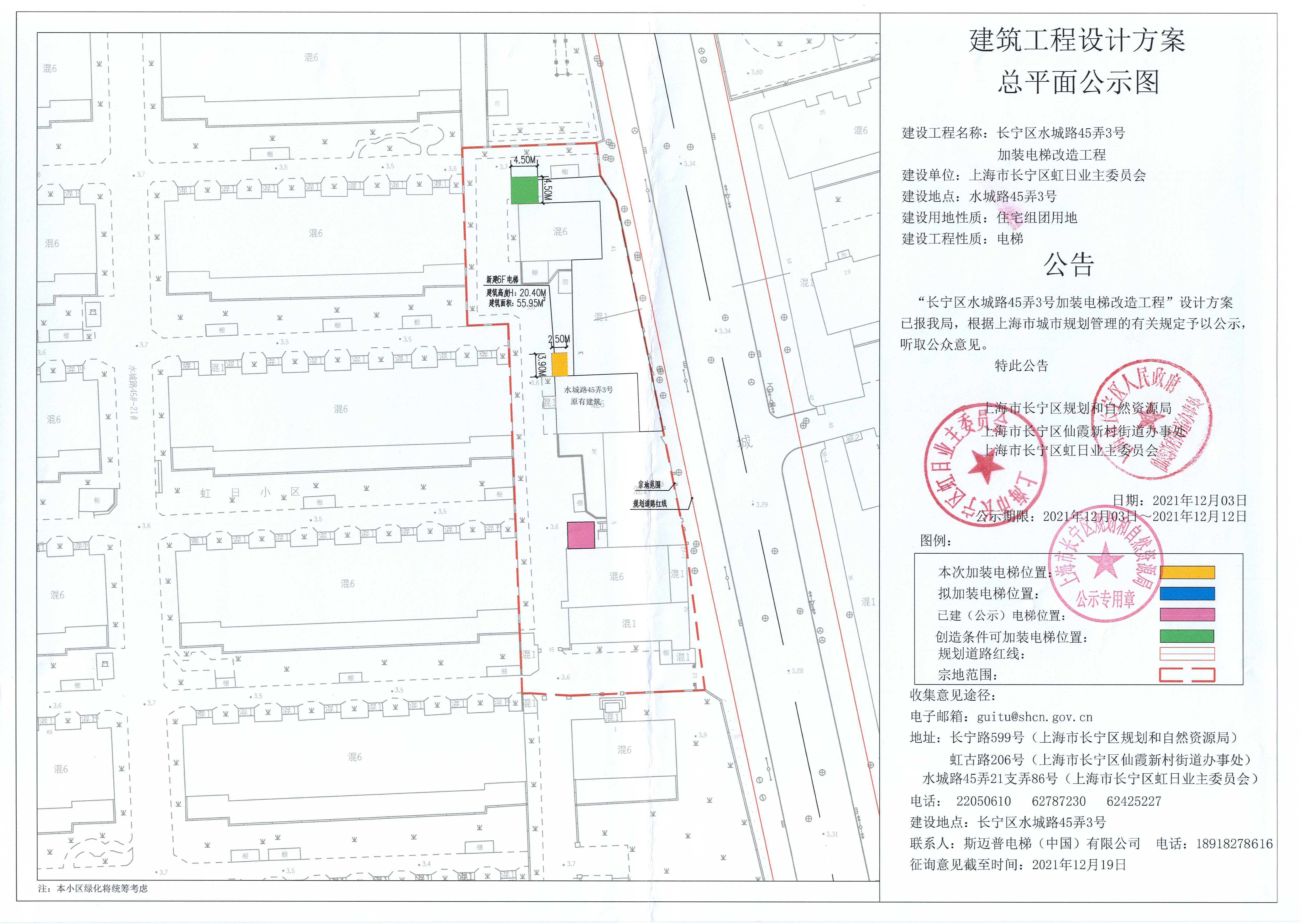 关于"长宁区水城路45弄3号楼加装电梯工程"有关内容予以公示