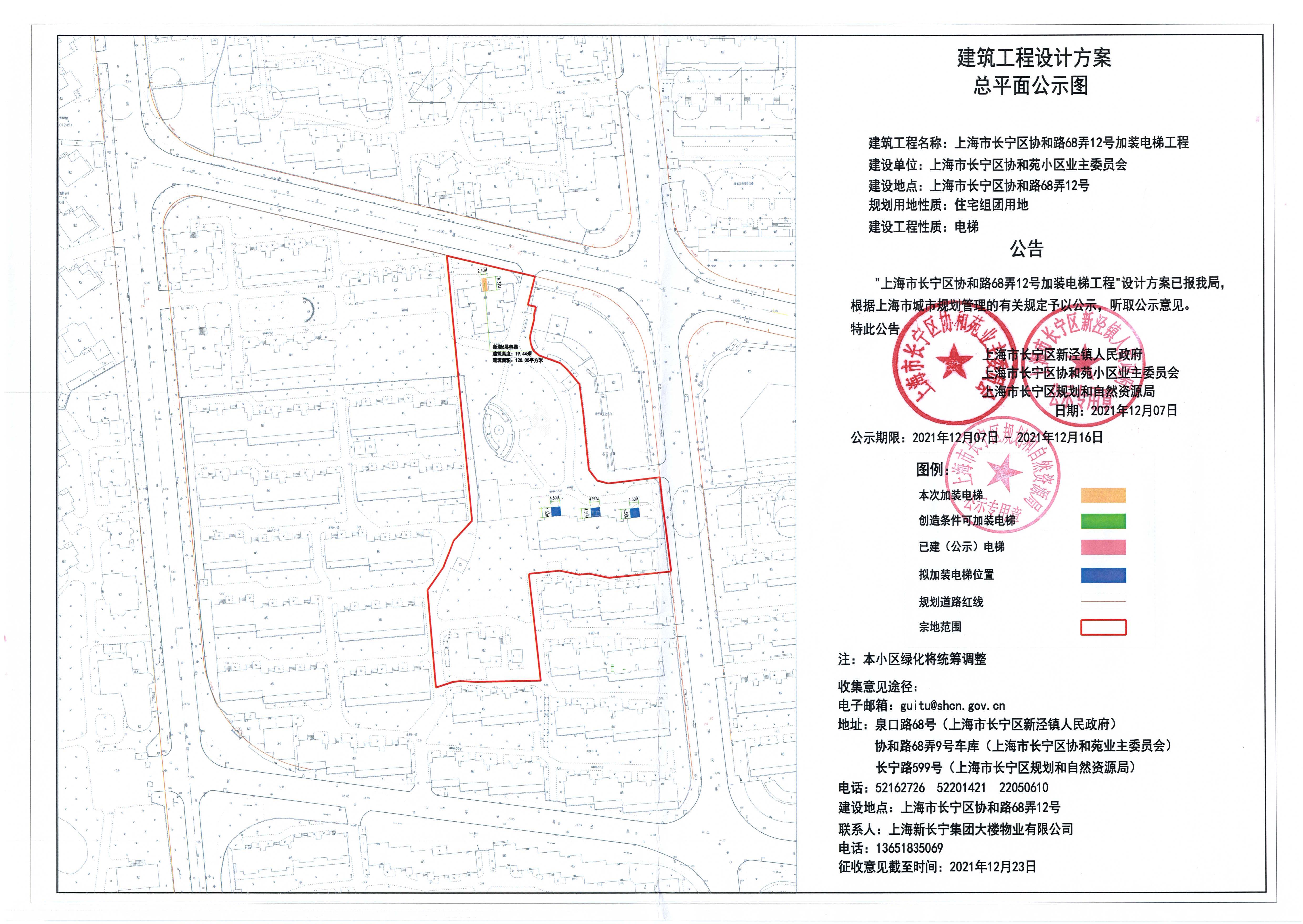 关于"长宁区协和路68弄12号楼加装电梯工程"有关内容予以公示