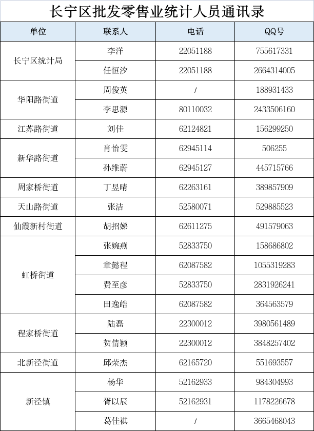 2025长宁区批发零售业统计通讯录