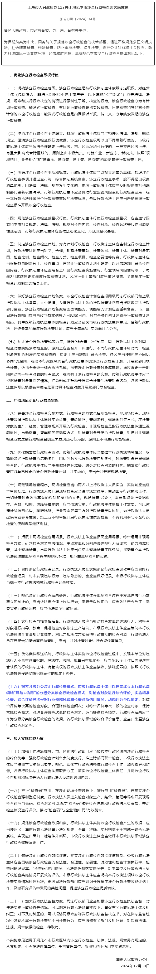 上海市人民政府办公厅关于规范本市涉企行政检查的实施意见